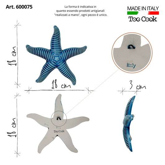 Toocook Stella Marina Onda in ceramica smaltata Blu Decorazione Murale e Arredo Casa, Realizzata Artigianalmente, Idea Regalo Made in Italy