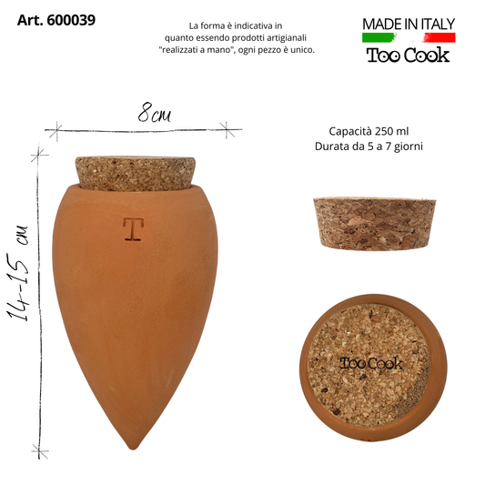 Toocook Olla in Terracotta Artigianale per irrigazione Automatica Ecologica e Naturale per Piante da Interno ed Esterno con autonomia di Circa 7 Giorni - Realizzata a Mano - 250 ml