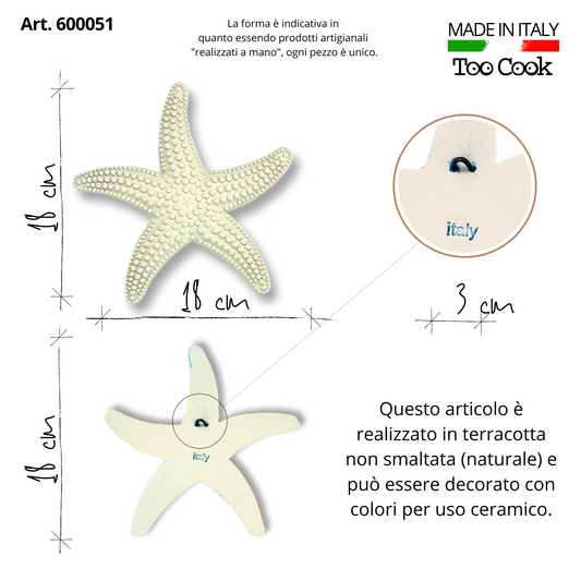 Toocook Stella marina in terracotta naturale bianca da decorare per Arredo Casa, Realizzata Artigianalmente, Idea Regalo Made in Italy