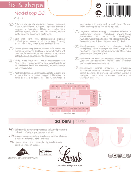 Levante Collant Every 20 denari Calze Linea Tuttonudo setificato opaco