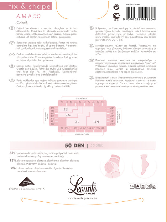 Levante Collant Donna AMA 50 DEN Calze con Corpino modellante Punta nuda