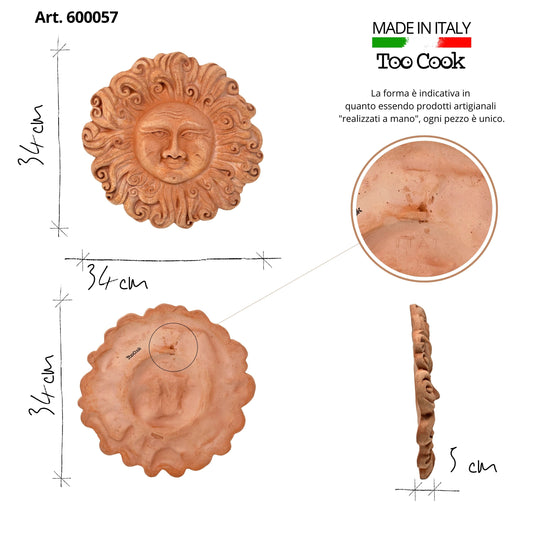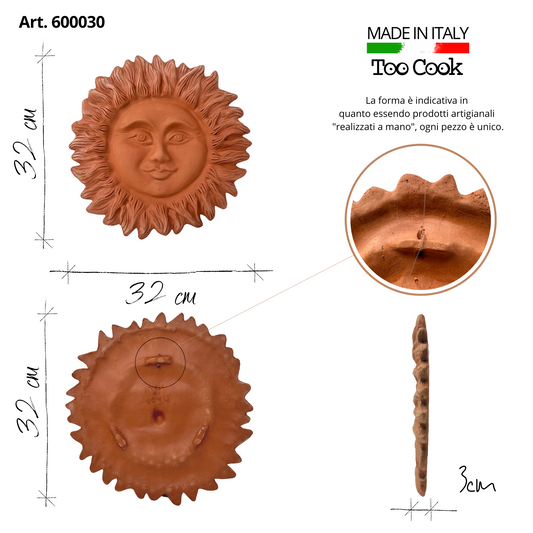 Sole 32 cm in ceramica artigianale da parete per arredo e decorazione casa Terracotta Idea Regalo