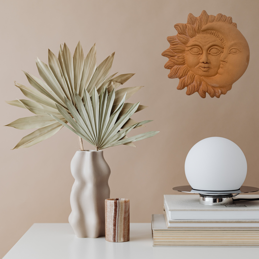 Sole e Luna in ceramica artigianale da parete per arredo e decorazione casa Terracotta Idea Regalo - 33 cm