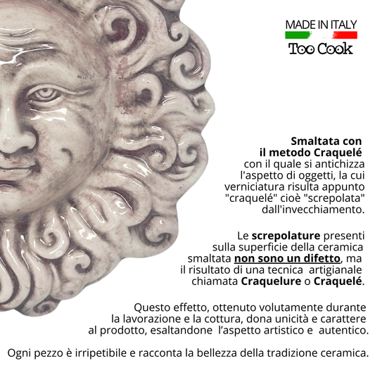 Toocook Sole Ricci in ceramica smaltata da parete - arredo e decorazione casa - Idea Regalo - Realizzato Artigianalmente in Terracotta - Made in Italy - 24 cm (bianco antico)