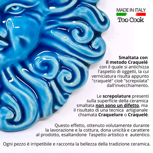 Toocook Sole Ricci in ceramica smaltata blu - da parete - arredo e decorazione casa - Idea Regalo - Realizzato Artigianalmente in Terracotta - Made in Italy - 24 cm