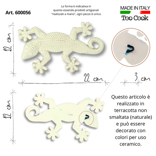 Toocook Geco in terracotta naturale bianca da decorare per Arredo Casa, Realizzato Artigianalmente, Idea Regalo Made in Italy