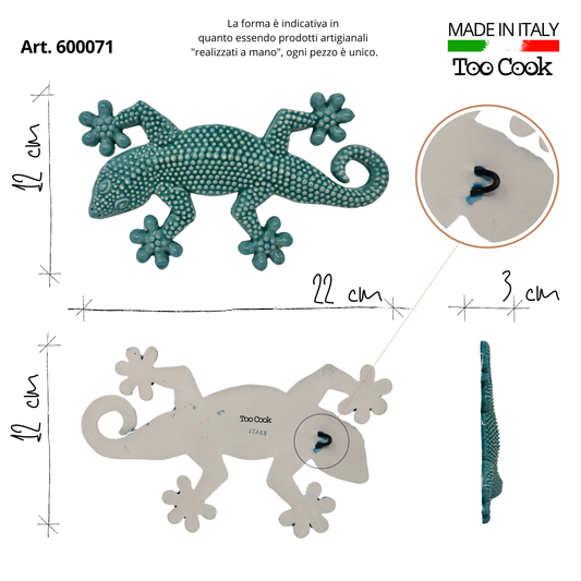 Toocook Gecko in glazed ceramic Wall Decoration and Home Furnishings, Handcrafted, Gift Idea Made in Italy