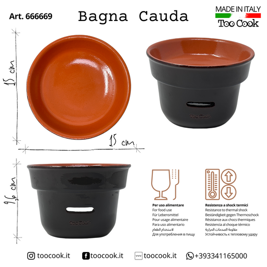 Toocook Stove Bagna Cauda Dip for vegetables Piedmontese Fondue recipe in Brown Terracotta. Made in Italy 100%