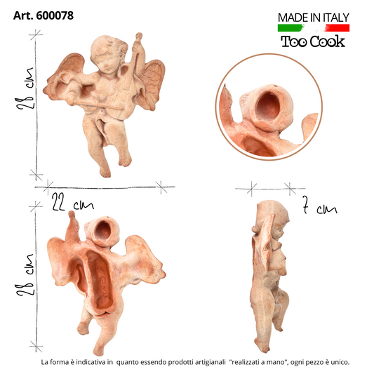 Toocook Angelo Musicista con Violino in Terracotta 28x22 cm – Scultura Religiosa da Parete, Fatto a Mano in Italia, Arte Sacra per Interni ed Esterni