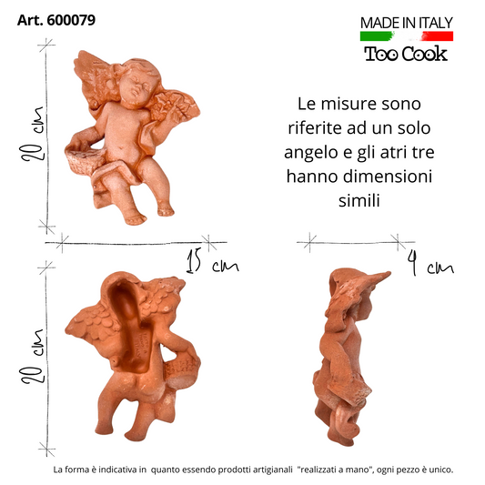 Toocook Set 4 Angeli in Terracotta Artigianale Quattro Stagioni Decorazioni da Parete per Interni Esterni Resistente alle intemperie cm.20