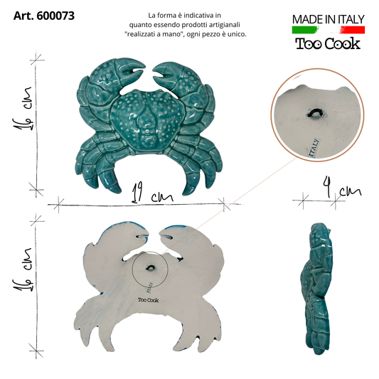 Toocook Glazed Ceramic Crab Wall Decoration and Home Furnishings, Handcrafted, Gift Idea Made in Italy