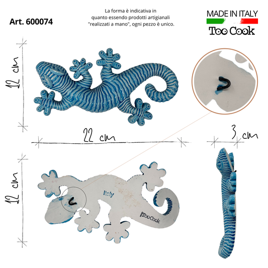 Toocook Gecko in glazed ceramic Wall Decoration and Home Furnishings, Handcrafted, Gift Idea Made in Italy