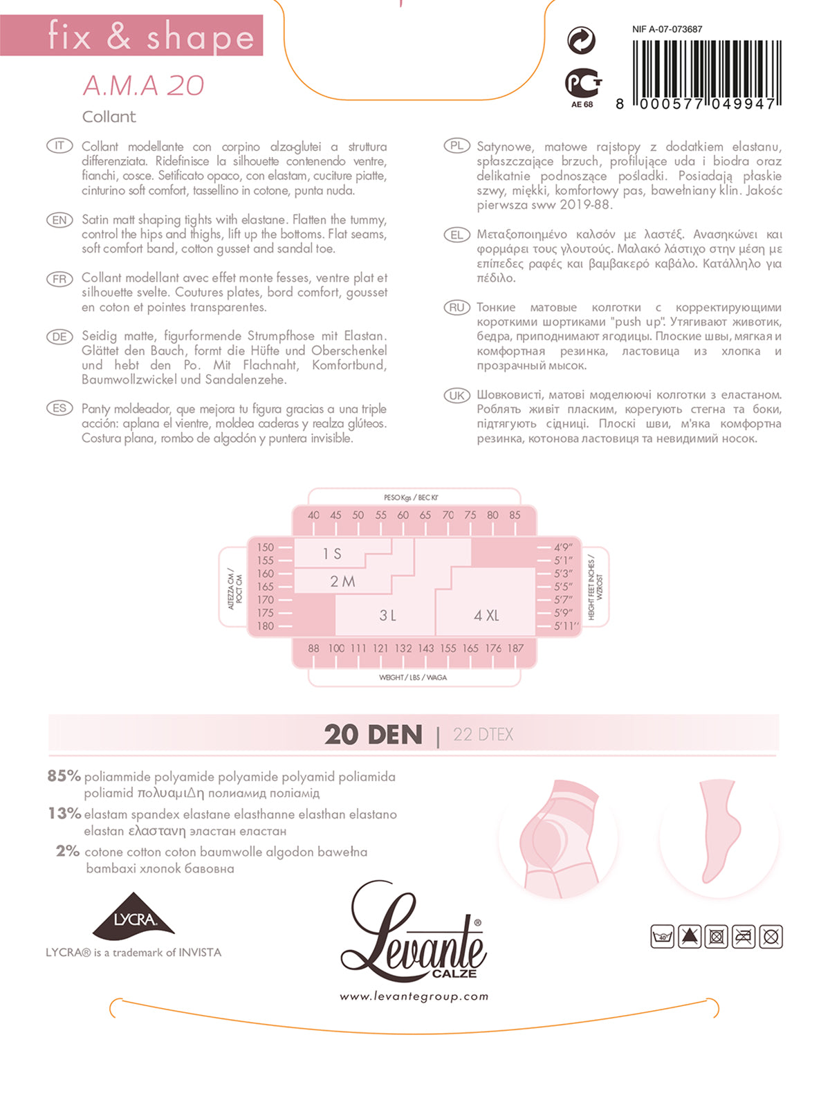 Levante Collant Donna Calze AMA 20 Denari Corpino alza glutei