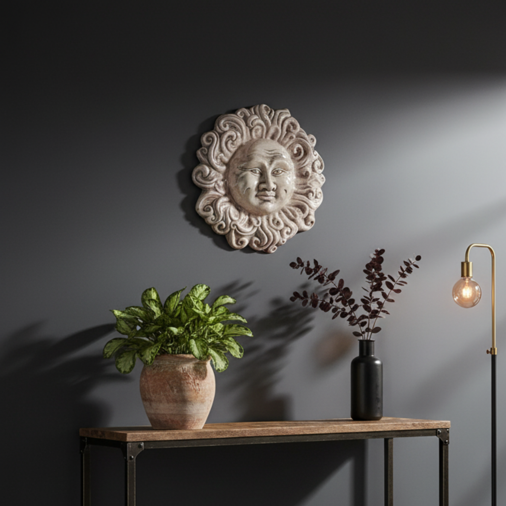 Toocook Sole Ricci in ceramica smaltata da parete - arredo e decorazione casa - Idea Regalo - Realizzato Artigianalmente in Terracotta - Made in Italy - 24 cm (bianco antico)